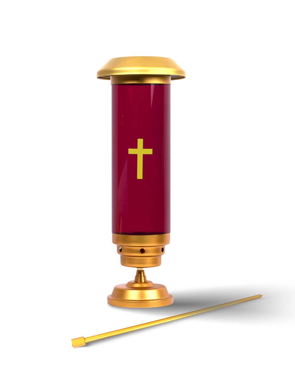 Cemetery Vigil Light size: 28” tall (with ground spike) Shatter Resistant Plastic Lens,Drain Holes Integrated to Prevent Water Build Up,Durable anodized aluminum construction for outdoor use.